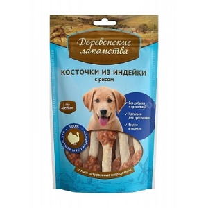 Купить Деревенские лакомства. 100% Мяса Косточки из индейки с рисом для щенков 85 гр. с доставкой